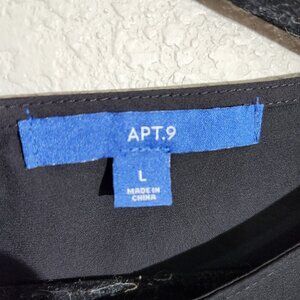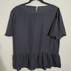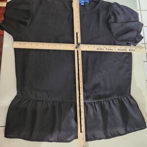 APT 9 Shirt Womens Large Black Short Sleeve Ruffle Hem Blouse Lightweight Top