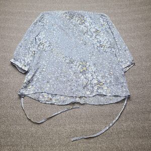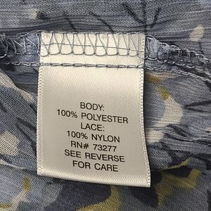 APT 9 Shirt Womens XL Blue Floral Button Front Lace Trim Sheer Blouse Top