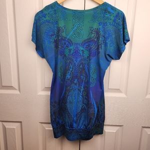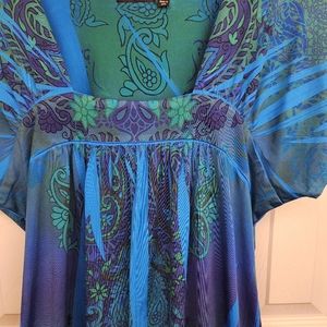 APT. 9 Silky Blue, Green, Purple Square Neckline Short Sleeve Blouse Size Medium