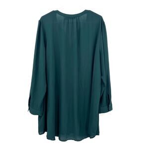 APT 9 Size 3X Blouse Green Hidden Button Up Double Pocket Loose Flowy Workwear