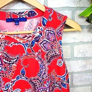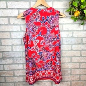 The top has a scoop neckline and a floral pattern throughout with a flowy lightweight design. Excellent condition.