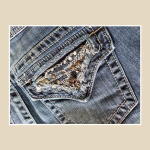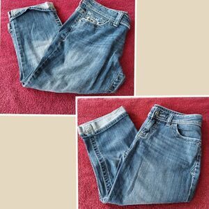 APT 9 Straight Leg cuffed jean Capri P/6 with embellished pockets Waist 15.5 Inches Inseam 19" rise 8"