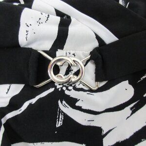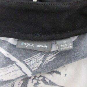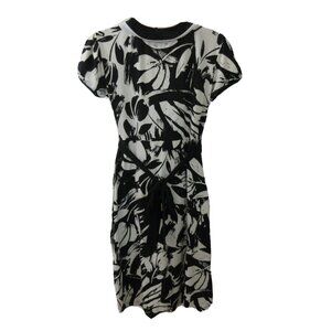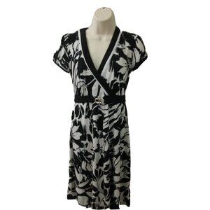APT 9 Stretch Dress Sz S Black White Floral Fit & Flare Cap Sleeve V-Neck Belted