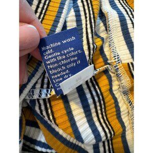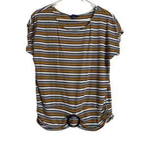 APT 9 Striped Short Sleeve Top Size Medium Ribbed Shirt Blue Orange