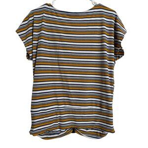 Stylish APT 9 striped short sleeve top in medium size. This ribbed shirt offers a comfortable fit and a trendy look.