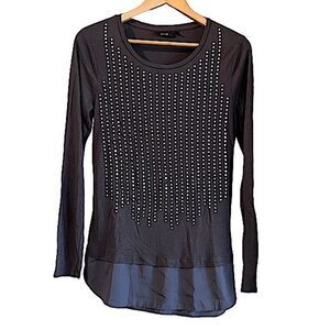 APT 9 Studded Layered Long Sleeve Black Tunic Top Medium lightweight
