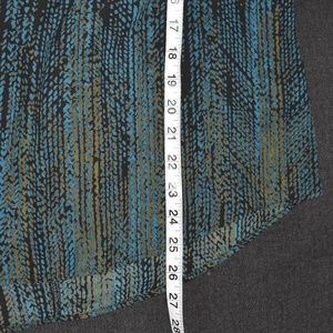 PRETTY, SHEER TOP. BLACK AND TURQUOISE WITH GOLD FLECKS.