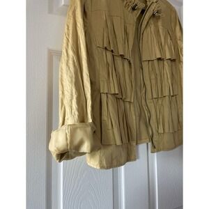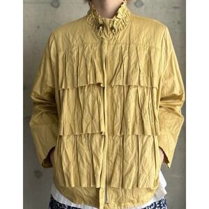 Style: Tiered and ruffled design, with ruffles at the collar and across the body of the jacket.