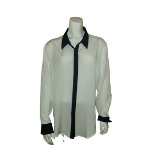APT. 9 White and Black Color Black Office Career Blouse Womens Size Large
