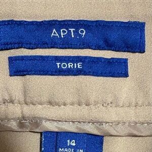 Classic khaki capri by Apt. 9. With cute slit at bottom of each leg. Perfect for casual day, a work-day or date. See pictures for measurements. Comfortable and stylish, well-cared-for garment from a smoke-free home.
