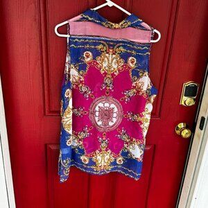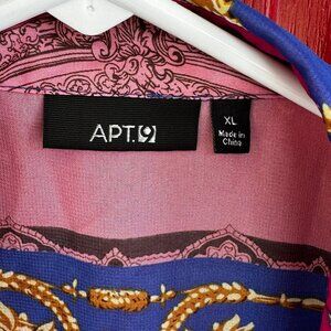 APT 9 / Women’s XL / Blue Pink Gold White / Chiffon Sleeveless Top Blouse / Collared / 1/2 Button / Sheer. Gently used condition. Smoke free and pet friendly home.