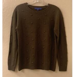 APT 9 Women's Dark Green Dot Long Sleeve Sweater with Ribbed Edging, Size Small