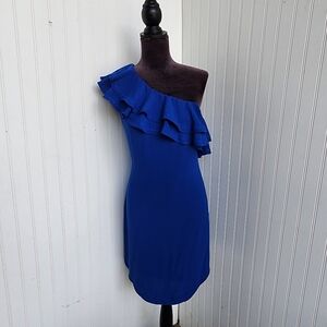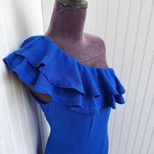APT. 9 Women's One Shoulder Embroidered Ruffle Dress Blue Lined $54 Royal Sz M