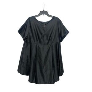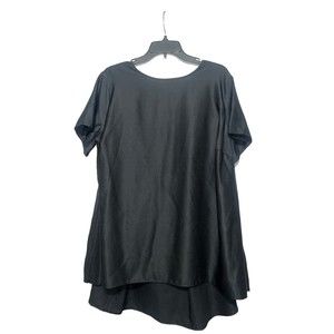 APT 9 Womens Size 1X Dressy Black Tie Short Sleeve Scoop Neck Blouse Lightweight
