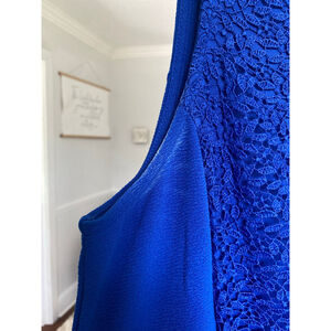 APT.9 Fit & Flare Sleeveless Dress Royal Blue Lace Detail L Wedding Event Preppy