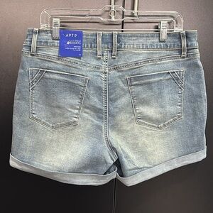 APT.9 Mid Rise Medium wash,short,cuffed shorts, 5 pocket, zip fly,,belt loops