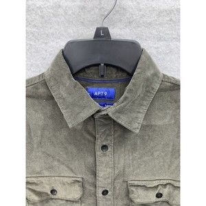 APT.9 Shirt Mens Small Gray Thin Ribbed Corduroy Long Sleeve Button Up Pockets preowned see all photos for details and measurements all measurements taken laying