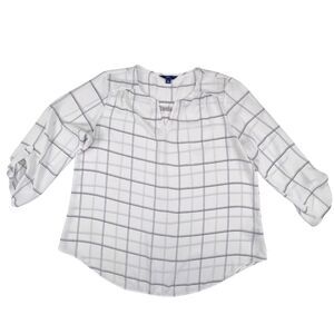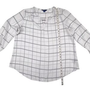 APT9 Top Women XL Contemporary Windowpane Check Blouse Split Neck Tie Cuff Shirt