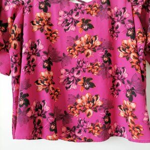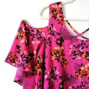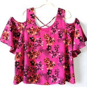 APT.9 Women Pink Cold Shoulder Sleeve Scoop Neck Floral Blouse Top Size XLarge