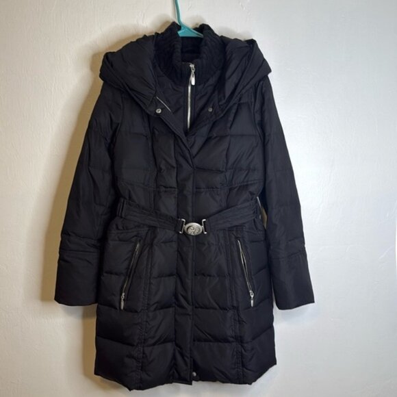 APT.9 Women’s Black Puffer Coat with Hood & Belt – Size M