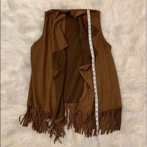 Features: brown soft thin lightweight vest with long gypsy tassels.