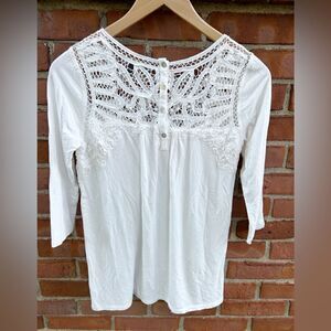 A Pea In the Pod Ivory Crochet 3/4 Sleeve Maternity Top
