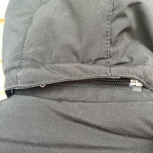 AQ Explore The Unknown Unisex black puffer coat, front & side zippers, hood,5-6