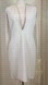 Stylish ivory dress with long sleeves. Features a deep neckline. Perfect for elegant occasions.