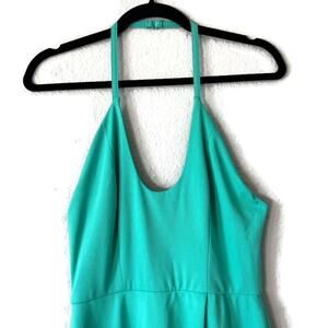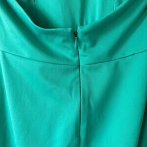 Great used condition! Dark minty green maxi dress. Fully lined and excellent quality with a deep U-shaped neck in a halter style. Slit on left side with open back and back zip closure.