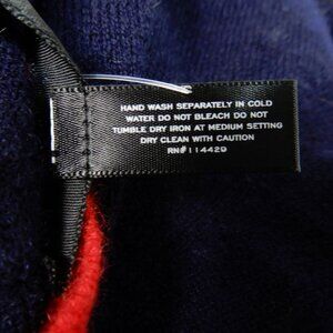 AQUA 100% Cashmere Stripe Trim Novelty Button Cardigan Sweater XXL Navy Red NEW