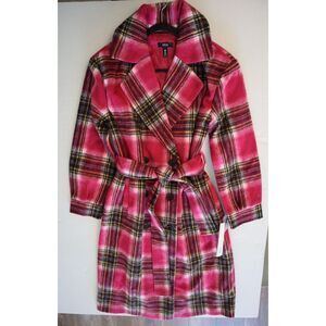 AQUA 81720 Women's Sz Medium Pink Plaid Duster Trench Coat