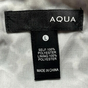 AQUA Leopard Animal Print Skater Dress, sweetheart neckline with tie, flutter sleeves, mini dress, print is black and gray with touches of blue, lined, back zipper closure, women's size large.