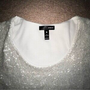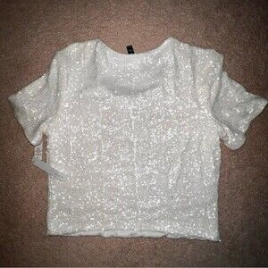 Shine bright in this AQUA Antique White Sequin Crop Top: • Glittering Elegance: Sequin embellishments for a touch of glamour. • Versatile Style: Pair with jeans or a skirt for a hic look. • Size [L]: Designed for a flattering fit. Elevate your wardrobe with this dazzling crop top today! Shoulders: 16" Length: 18" Bust: 34" around Sleeve: 7"