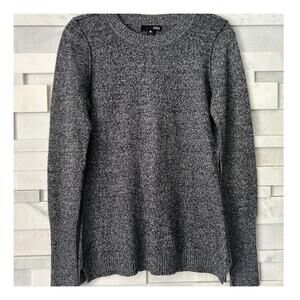 AQUA BLOOMINGDALE'S 100% Cashmere Black Beige Melange Knit Crew Neck Pullover S