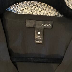 AQUA BLOOMINGDALES Black Crochet Lace Inset Drawstring V-neck Blouse Tunic S