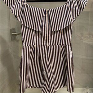 AQUA BLOOMINGDALES Striped Off the Shoulder Romper XS
