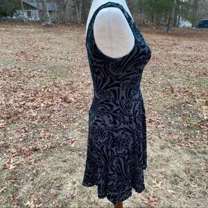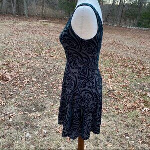 AQUA BRAND DRESS MINI SLEEVELESS V FRONT V BACK GREEN BURN OUT VELVET BLACK FIT AND FLARE JUNIORS SMALL S sold at Bloomingdales