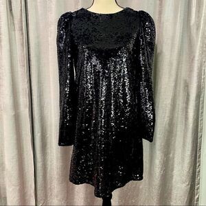 This gorgeous little number is perfect for holidays and New Years- even if you’re just celebrating online!! Raise a glass to this beautiful dress- perfect for dancing the night away! The cut out in the back keeps it youthful and fun, and you can feel safe knowing you can shake it without showing too much! The slightly puffed sleeves give it a designer touch à la Balmain