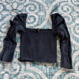 AQUA Black Smocked Square Neck Ruffle Crop Top - Size S