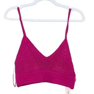 AQUA Bloomingdale's Large Crochet Fucshia Crop Top