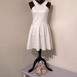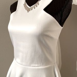AQUA (Bloomingdale’s) Scuba Skater halter mini dress in Pure White size Large