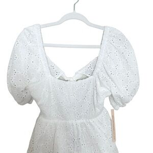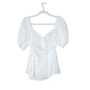 AQUA Bloomingdale's Small Eyelet White Open Tie back Blouse