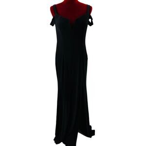 AQUA Bloomingdales sz 4 black off the shoulder cut out slit gown NWT $228 b136