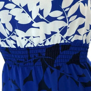 AQUA Blue Navy Floral Long Strapless Boho Slit Maxi Dress Smocked Size XS