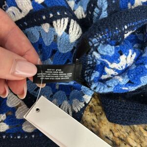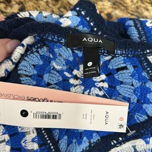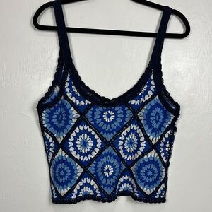 AQUA Boho Blue Allover Crochet Sleeveless Cropped Top Size L