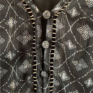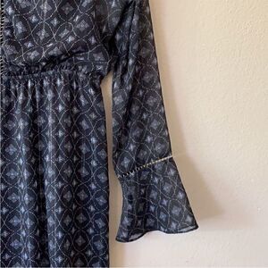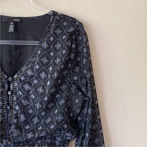 AQUA Button Down Pattern Long Sleeve Dress. Size Medium. The sleeves are semi sheer and the rest is lined. Pretty gold detail on wrist and chest area. Elastic waist. Gently worn, good condition.