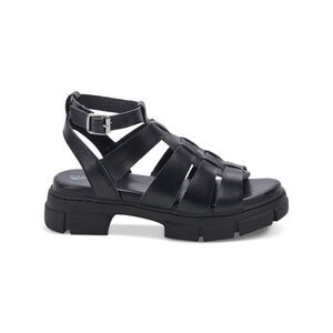 AQUA COLLEGE Womens Black Hannah Round Toe Platform Slip On Sandals 11 M