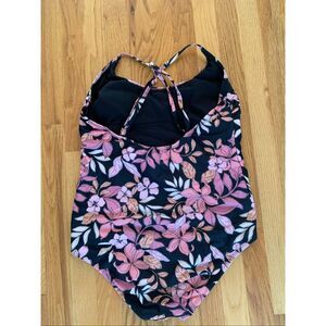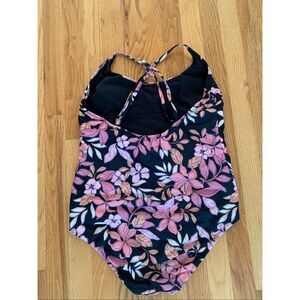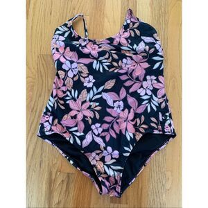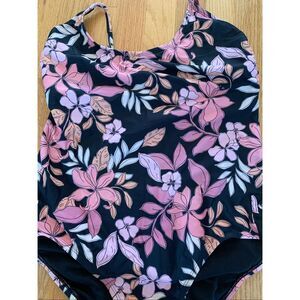 AQUA COUTURE One Piece Swimsuit Black Orange Pink Florals size XL