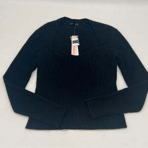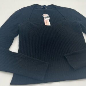 AQUA Cashmere Black Ribbed Sweetheart Neck Sweater – Size L