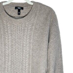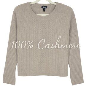 AQUA Cashmere Cable Knit Sweater Tan Beige L Cozy 100% Wool Fall Classic
